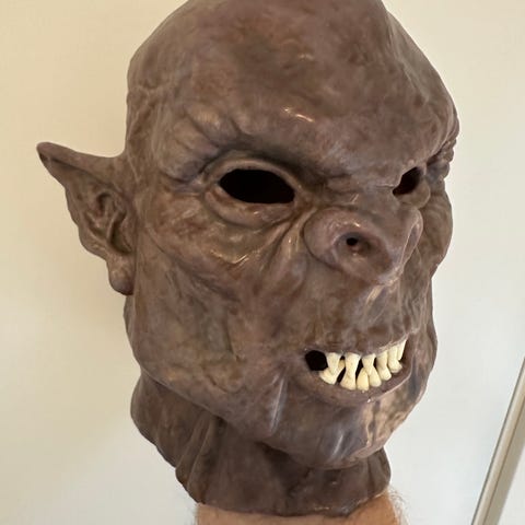 Håndlavet necromancer stav til cosplay mv. vædderkraniet og hornene er 3D printede og let malet. Selve skaftet er af naturligt træ som er indgraveret med en brænder. Fjer, pynt og lædersnor er efterfølgende påsat og 3d printet crystal som finish.