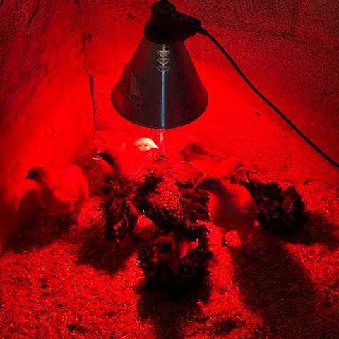 Varmefrie 7ugers langsomtvoksende kyllinger af racen Hubbard som er godkendt til økologisk slagtekyllingeopdræt. Primært hønekyllinger.