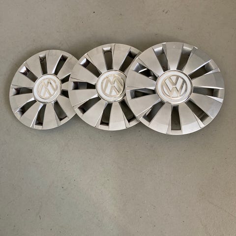 Hjulkapsler til vw up sælges, de er fine men har lidt ir i midten også er den ene knækket et sted, men har ingen betydning og ses ikke når monteret.