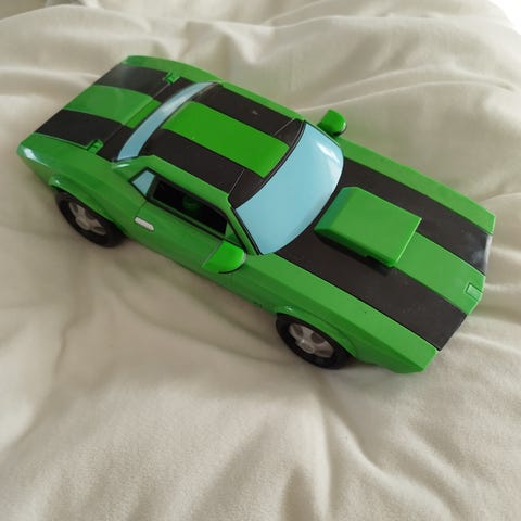 Ben 10 legetøjsbil der kan foldes ud. Ok stand, men nogle små tilbehørs dele mangler. De tre figurer følger med.