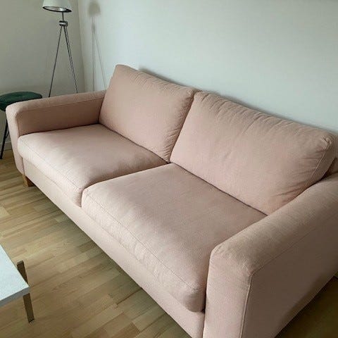 Sofaen Big har i serien sex and the city. Købt i design -delikatessen. Ægte uld. Super flot og dyr sofa men trænger til en rens. Ny pris 22000