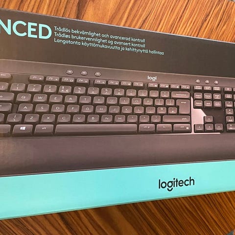 Logitech Desktop Wave tastatur og mus sæt. Tastaturet har ergonomisk design med buede taster for komfortabel brug. Sættet er sort og egnet til kontor brug. Og sættet er åbnet men qldrig brugt