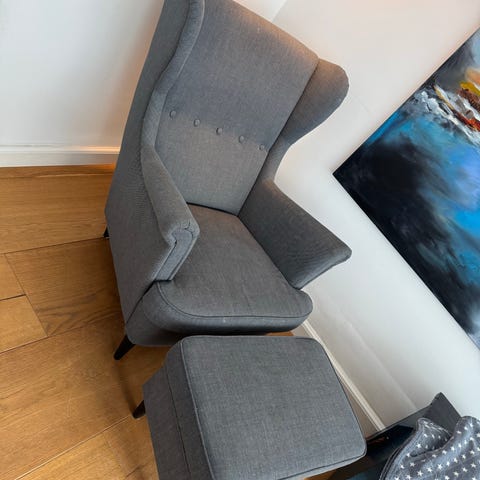 Stolen er i rigtig flot stand, kommer fra et ikke-rygerhjem og har kun været let brugt. Ingen pletter, huller eller løse syninger.
