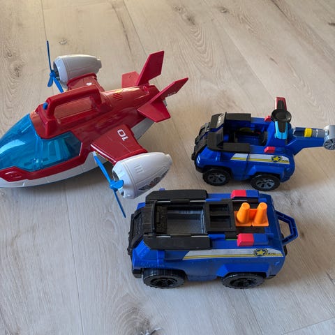 Paw Patrol Skye legetøjsfly i hvid og pink farve. Fremstillet i plastmateriale med fire hjul, designet til børn. Legetøjet har detaljer som vinger og motorer, der efterligner et fly.