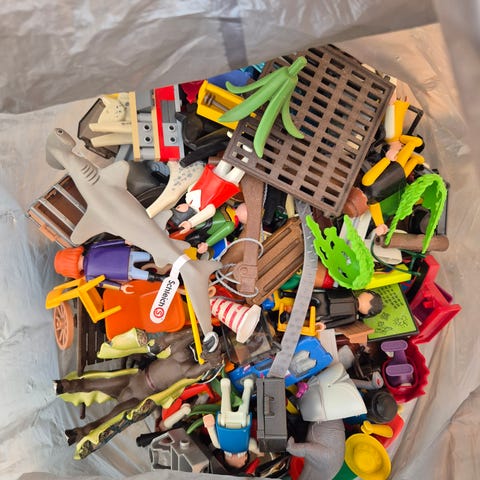 Pose med bla. playmobil. Ridderborg. Øde ø. Mm. Dele mangler