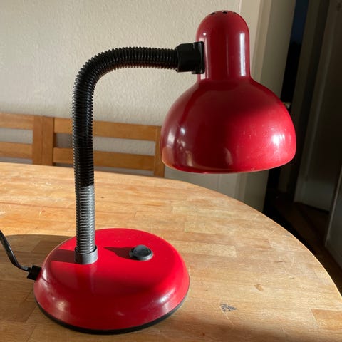 Vintage bordlampe . Retro lampe . Smuk gammel retro vintage bordlampe . Ved ikke hvem arkitekt eller designer er . Men har i tidernes morgen været grøn . Med messing flexarm. Original afbryder , stik og ledning . Måler 40 cm høj udtrukket. Kr 250,- se flere fotos på annoncen. Sender gerne eller afhentes efter aftale i Gilleleje