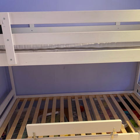 Solid køjeseng fra IKEA i massivt træ, brugt i ca. 3 år og i pæn, brugt stand. Sengen har lameller til begge senge, så begge køjer kan bruges.