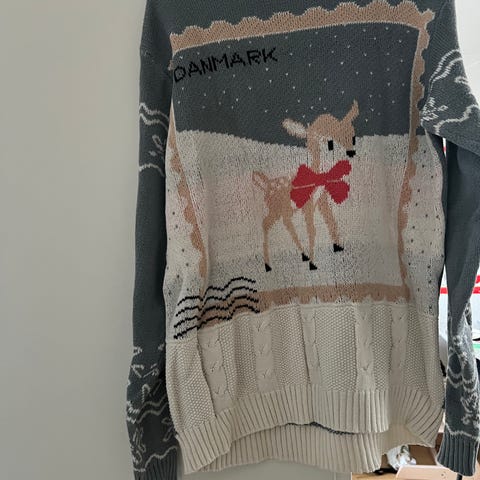 Rigtig sjov julesweater med lys der blinker, købt for lille. Sælges med prismærke..ikke brugt.