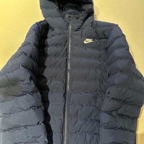 Nike unisex børnejakke i størrelse 146. Jakken er brun med lyse detaljer og hætte