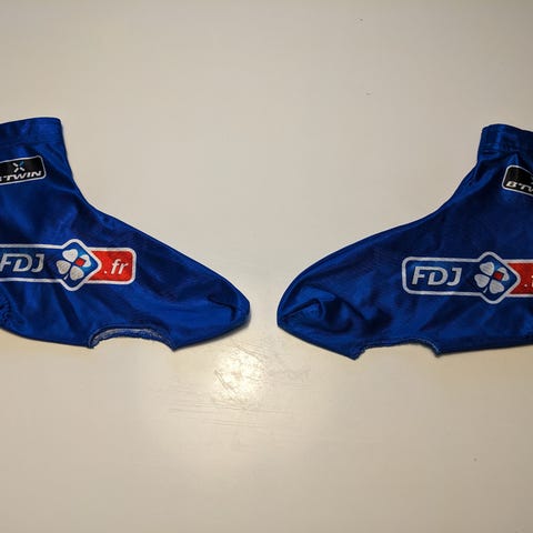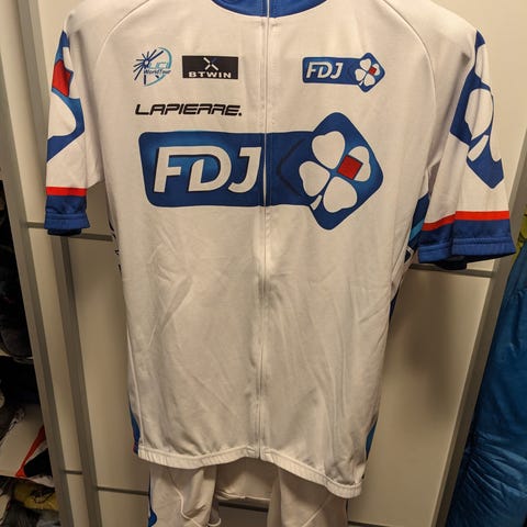 Til afhentning (til den anførte pris). Næsten som nye herre FDJ cykelhandsker fra Btwin. Str. L.