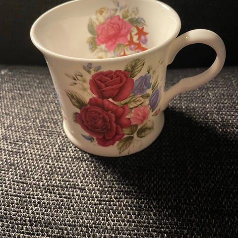 Det er et fint stort krus. Det har fået et par små hak nederst i kanten rundt, men ellers er det i fin stand. Kan ses på billederne.