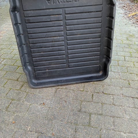 Skoda gummimåtte til bil, designet til at beskytte bilens gulv mod snavs og fugt. Måtten er lavet af slidstærkt gummimateriale og har en skridsikker overflade for at forhindre bevægelse under brug.