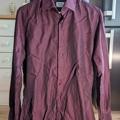 Skjorten er vasket en enkelt gang (og siden opbevaret i original produktboks. Upåvirket af dagslys) - men aldrig brugt.