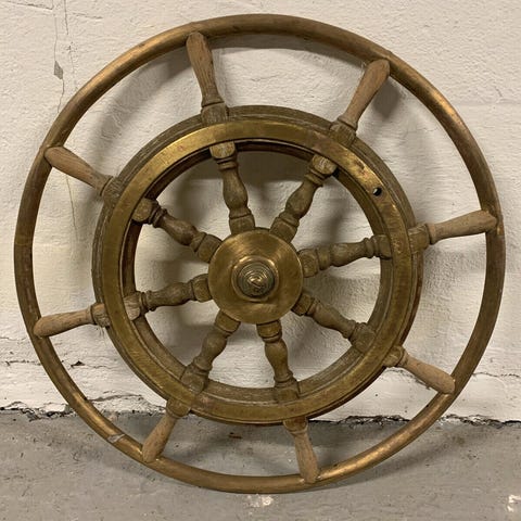 Ældre Styremaskine/Rormaskine/Skibsrat på søjle i messsing,fod i støbejern.