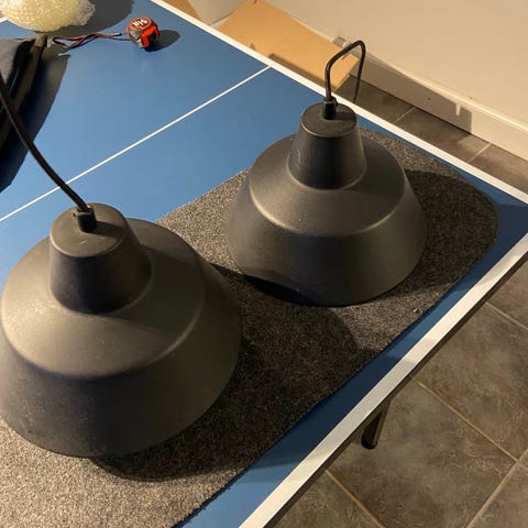 2 stk værkstedslamper i mat sort.