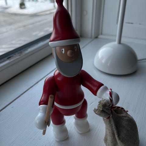 Han har desværre smidt stokken væk i hans juleræs, men så længe sækken med gaver er der, så bliver det stadig jul🙂🙂 små mærker ved den ene hånd. Obs uden æske