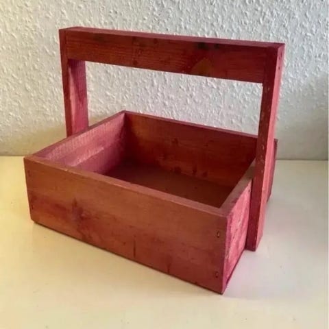 Rød trækasse med hank, Ældre rød rustik trækasse m håndtag