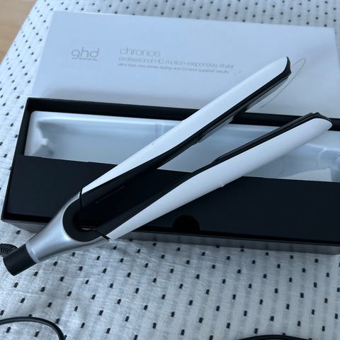 ghd duet style hårglattejern i sort farve. Enheden har en ledning med stik til strømforsyning. Designet til at glatte og style hår med justerbare varmeindstillinger.