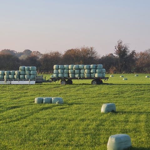 Fra 2. slet 2025. Slået og pakket midt i september måned og har ikke fået regn. Pakket med 10 lag plastik. Lavet af græstyper der giver lavt sukkerindhold og er velegnet til heste.