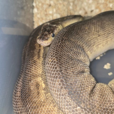 Stor flot kongepython som er 100% tam og håndvant. Ca 120cm. Æder frosne rotter.