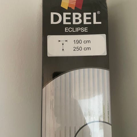 Mørklægningslameller fra Jysk i hvid. Højde og bredde kan justeres. B150 x H250 cm.