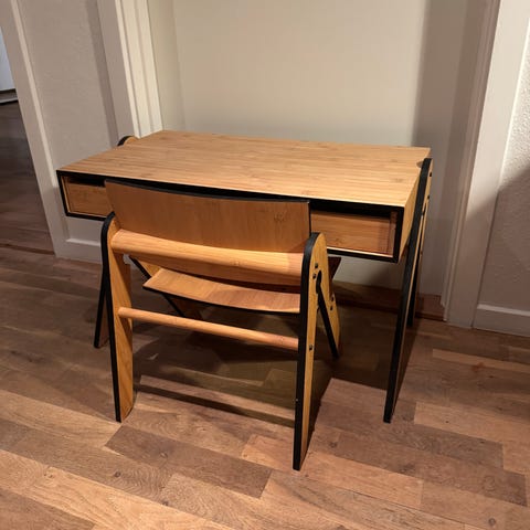 Skandinavisk design til børn som du har lyst til står fremme! Stolen er i egetræ.