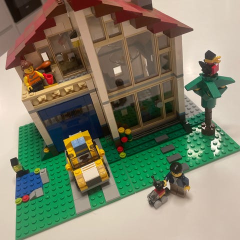 Komplet incl 4 byggevejledninger. Der kan bygges i alt 3 forskellige modeller (mindst!). Der medfølger ekstra klodser til de andre modeller.