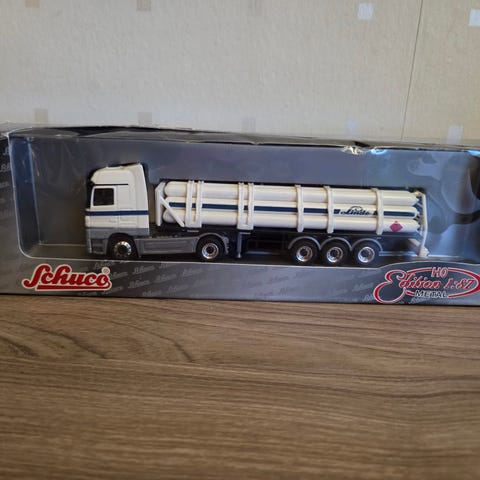 Schuco Mercedes-Benz Travego busmodel 1:87. Modellen er i H0-skala, hvilket svarer til 1:87.