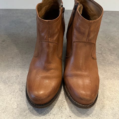 Sort kort støvle i blødt skind. Hæl 7 cm.