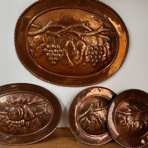 Dekorative vægplader. Sandsynligvis lavet af kobber.