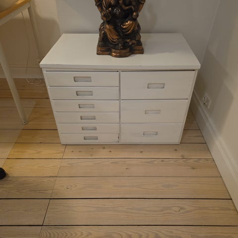 TROTTEN fra ikea. Lille hvid kommode i metal. Har hjul og tre skuffer, en med lås - nøgle haves. Nypris kr. 599,- fra ikke-ryger hjem.