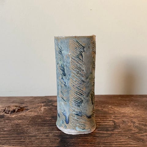 Fin blå keramik vase med ukendt signatur