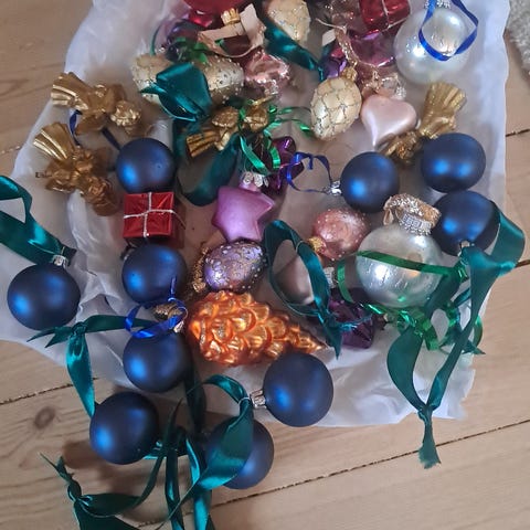 Julekugler 20 stk . Blandede farver og størrelser til juletræet.