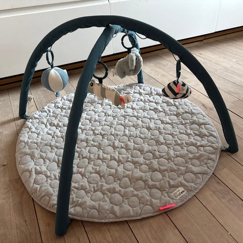 Lækkert og blødt baby aktivitetstæppe fra Done by Deer i grå nuancer. i meget fin stand.