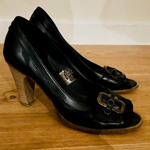 Fedeste skind stiletter med smuk udskæring og to slags skind. Str. 39