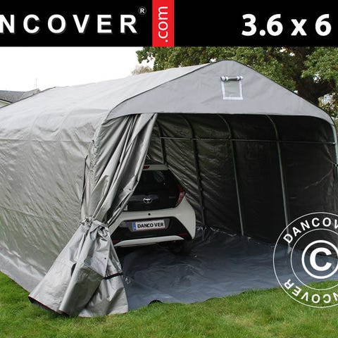 Garagetelt PRO 3,77 x 9,7 x 3,18 m med PE dug, grå