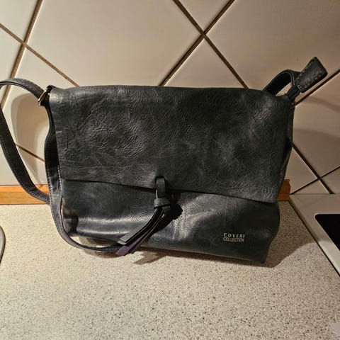 Pæn brun taske med hank og skulderrem - skulderrem kan tages af. Taske med 2 rum, med plads til mobil + lille rum med lynlås. Lukkes med knap. B: 32 cm, H: 22,5 cm, D: 10-12 cm.