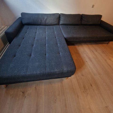 Sofa med chaiselong og stor kammel. Inkl. to nakkestøtter.