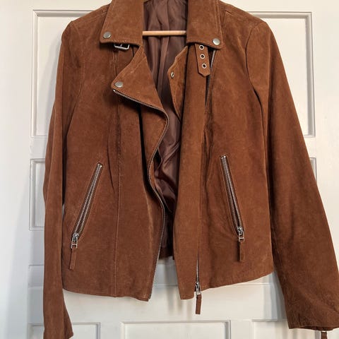 ONLY Andre jakker i størrelse M til kvinder i grøn ruskind. Jakken har lynlåslommer, reverskrave og lynlåsdetaljer på ærmerne. Designet til hverdagsbrug med et klassisk snit.