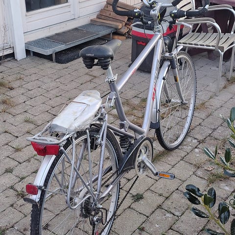 Ingen skrammer lille smule mudder på pedalerne køre uden problemer ingen fejl med bremserne eller girende følges løs med nøgle med