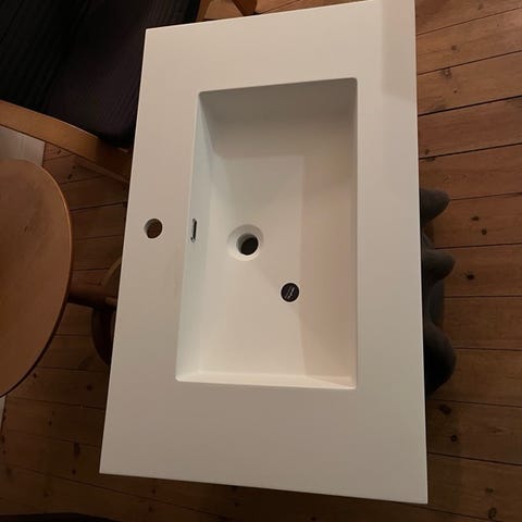 Super fed og anderledes håndvask, råt look med god patina, har et lille hak i kanten.