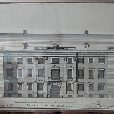 Dekorativ til københavner lejlighed. Tegning af en port ved Kjøbenhavn, udført på papir med detaljeret gengivelse af portens arkitektur inklusive smedejernsgitter. Tegningen er mærket med 'Faslagt i Skoleradet den 30/6 1819' og indeholder håndskrevet tekst 'Opmaaling af Porten ved Rysensten Kjøbenhavn'. Rammen er af gyldent materiale.
