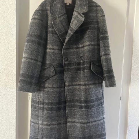 H&M tekstureret grå/sort frakke i uldblanding Størrelse: 36/S