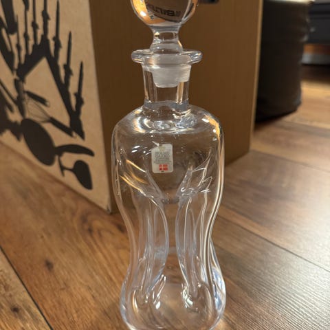 Smukke klukflasker i hhv turkis og ufarvet glas med kroneprop.