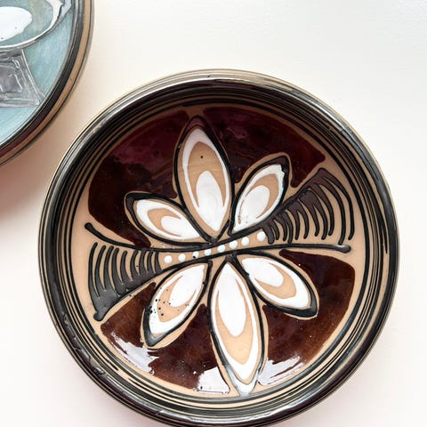 Flot retro keramik platte som kan hænge på væggen i blå/grønne nuancer. Flot stand uden skår.