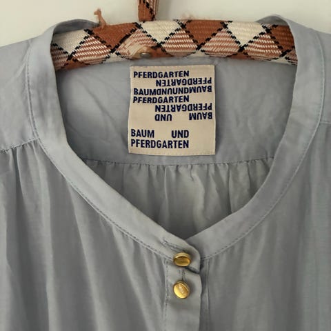 Bredde under arme 52-53. Længde 101. Der står str. 42 i den. Det er røget en knap men den følger med, så køber kan sy den på.