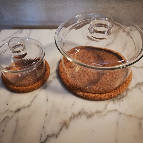 Fin og intakt Bodum skal med låg. Men den har været solgt som brug til opbevaring af hvidløg. Den kan selvfølgelig bruges til alt men med tætsluttende låg.