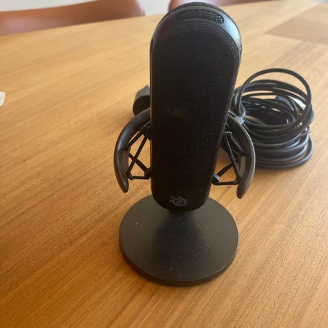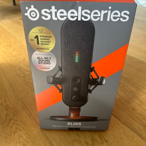 SteelSeries Alias mikrofon i sort farve. Mikrofonen er designet til brug med forskellige enheder og tilbyder kvalitetslydoptagelse. Velegnet til gaming, streaming og kommunikation.