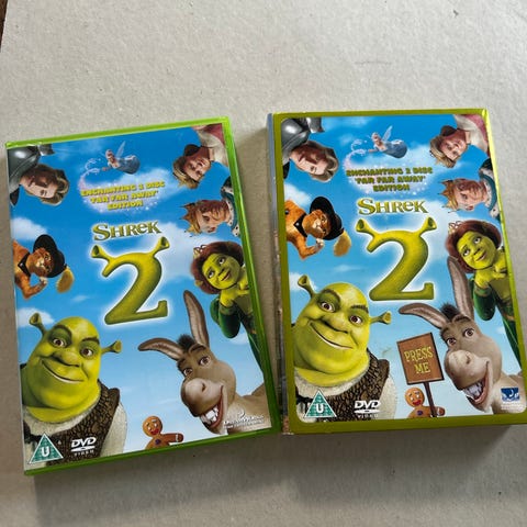 Shrek DVD film pakke bestående af tre film: Shrek, Shrek 2, Shrek den Tredje og Shrekelig Jul. Filmene er på dansk og indeholder animation og eventyr. DVD'erne leveres i originale covere.
