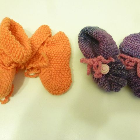 Små baby-futter strikket af min mor i lækkert blødt acryl-garn i røgfrit hjem.
